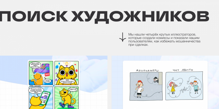 Для этого команда «Апреля» совместно с «Авито» нашла четырёх крутых иллюстраторов: Лапку художника, Марию Rapapazzi, Кота Булчика, Машрумову, которые подготовили комиксы и видео о том, как проводить безопасные сделки на «Авито».