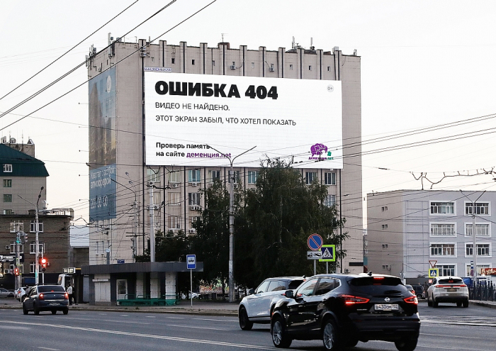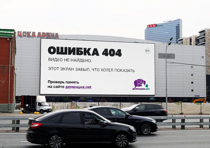 В сентябре стартовала всероссийская кампания «Ошибка 404», посвящённая борьбе с деменцией и её ранней диагностике. Баннеры, «забывшие» своё сообщение, стали символом когнитивных нарушений. Проект, созданный агентством What If Semin, объединил усилия с медиахолдингом МАЕР, разместив рекламу на 150 поверхностях в 15 регионах. Кампания приурочена ко Всемирному месяцу борьбы с болезнью Альцгеймера. Подробнее на Sostav.