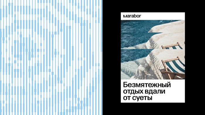 Бренд построен на глубоком изучении аудитории, ее ценностей и ожиданий. Визуальная система вдохновлена ритмом волн и архитектурой здания. Диагональ в букве «М» плавно перетекает в линию, повторяя вид отеля сверху и создавая атмосферу умиротворения.