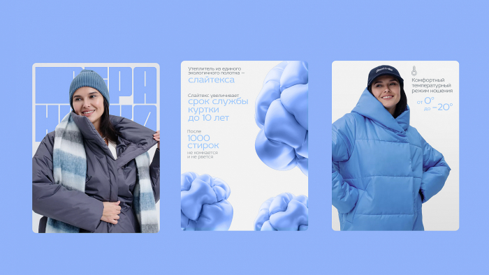 Агентство разработало дружелюбный стиль, где шрифт вдохновлен пуховиками оверсайз. Логотип и элементы стиля свободно адаптируются под любые носители за счет блочной системы и проработанной сетки. Как и одежда бренда — такая же удобная и практичная. Шрифтовое решение настолько гибкое, что помимо эффекта оверсайз, еще и позволяет интегрировать в него объекты и фотографии, чтобы показать еще больший объем и ассортимент прямо внутри знака. Подробнее на Sostav.