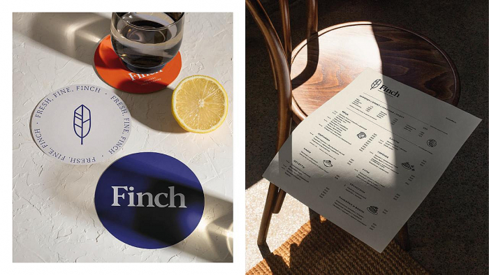 Фирменный стиль говорит о легкости и солнечном утре, когда кофе и завтрак встречаются вместе. Это достигается за счет цветовой гаммы и утонченной типографики в меню и на других носителях. Перо в логотипе не случайно. Finch в переводе на русский – зяблик, птица, прилетающая с наступлением тепла, что говорит о комфортной и теплой атмосфере в кофейне для гостей, ведь Finch – это про любовь к еде и людям.
