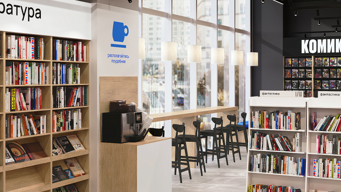 Первый обновленный магазин открылся в ТЦ «Метрополис». Новая концепция включает зоны для комиксов, детскую зону Монтессори и комфортные пространства для чтения. Интерьер дополнен мягким освещением, деревянными текстурами и уютной атмосферой.