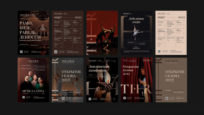При разработке логотипа важно было предусмотреть возможность трансформации из полной версии THEATRUM в аббревиатуру THR. Для этого мы добавили соединительный штрих, который не только отражает позиционирование бренда, связанное с открытиями, но и органично объединяет буквы H и R.