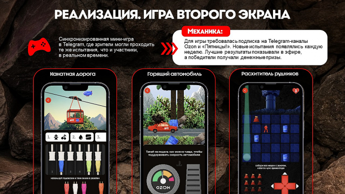Для зрителей была создана игра в Telegram. Они участвовали в испытаниях параллельно с героями шоу, используя телефон как «второй экран».