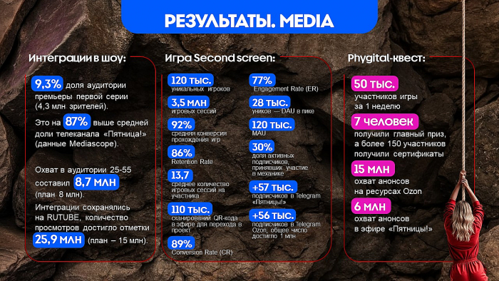 Игра «второго экрана» привлекла 120 тыс. игроков, было проведено 3,5 млн сессий с конверсией 92%;