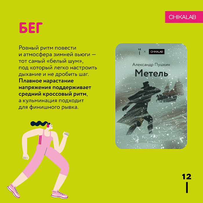 Команда агентства TooMuch провела для Chikalab интегрированную РК совместно с журналом о чтении «12». Концепция объединила спорт и литературу рассказами для прослушивания во время тренировок. Сборник из 12 рассказов был распределен на 4 блока: бег, велопрогулка, фитнес, пилатес и йога. Под каждый вид спорта подобраны соответствующие сюжеты, ритмы и эмоциональные тона.