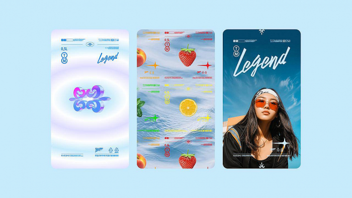 Кыргызская марка «Шоро» обнаружила, что поколение Gen Z считает обычную воду слишком скучной для потребления. Чтобы заинтересовать юных покупателей, производитель решил не идти против течения, а просто добавил в свою родниковую воду из линейки «Legend» целую палитру ярких вкусов. Так появились сладкие напитки — «Legend со вкусами». Чтобы привлечь дополнительное внимание к продукту, в рамках кампании по запуску была разработана айдентика бренда. Вся айдентика построена на контрастах. Классическое оформление этикетки сочетается с авангардной графикой, традиционные орнаменты — с флуоресцентными диджитальными цветами, природные мотивы — с цифровой эстетикой 2000-х. В качестве акцентного использовали шрифт с непривычным наклоном влево, который ярко выделяется на фоне логотипа, выполненного традиционным курсивом. Штрихкоды, идентификаторы и другие детали маркировки стали самостоятельным элементом стиля. Из них можно создать футуристичный узор или рамку.