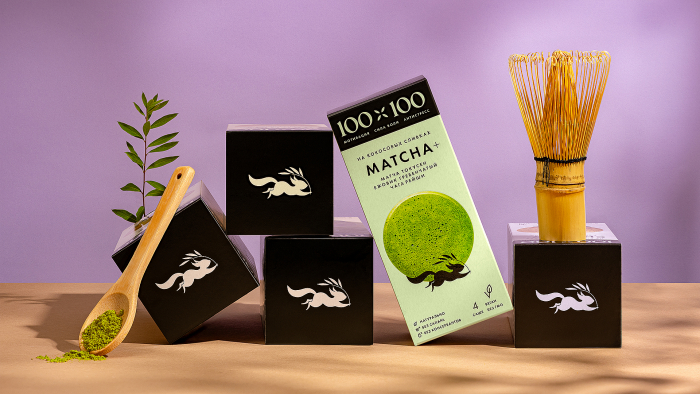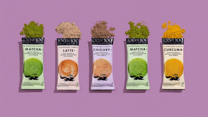 Команда Ohmybrand разработала дизайн упаковки и маскот для бренда «Сто на сто» — линейки функциональных растворимых напитков без лактозы, объединяющая привычные вкусы (латте, матча, цикорий, куркума) и функциональные компоненты: адаптогенные грибы, морской коллаген и другие. Ключевой образ — изящная белка, олицетворяющая целевую аудиторию: жительницу мегаполиса, которая заботится о своем здоровье, всегда полна энергии и ловко успевает всё. С листочком в руке она мчится по своим делам, символизируя баланс между природной силой и городским ритмом жизни. Дизайн чистый и информативный. Для каждого вкуса подобран интуитивно понятный оттенок. Акцент сделан на пользе: ключевые ингредиенты указаны в названии. Фудзоны изображены современно и минималистично. Маскот интегрирован в элементы упаковки, превращая даже штрих-код в часть бренд-истории. Яркий и стильный дизайн отражает пользу, природное происхождение ингредиентов, а маскот формирует эмоциональную связь, выделяя бренд на полке.