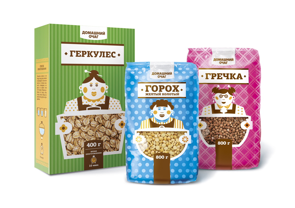Агентство VOZDUH в 2013 году создало дизайн упаковки круп компании «Мистраль Трейдинг». В основу визуальной концепции ТМ «Домашний Очаг» лег образ «бабушек-домохозяек», как гаранта самых вкусных приготовленных каш и хранительниц традиций домашнего очага.