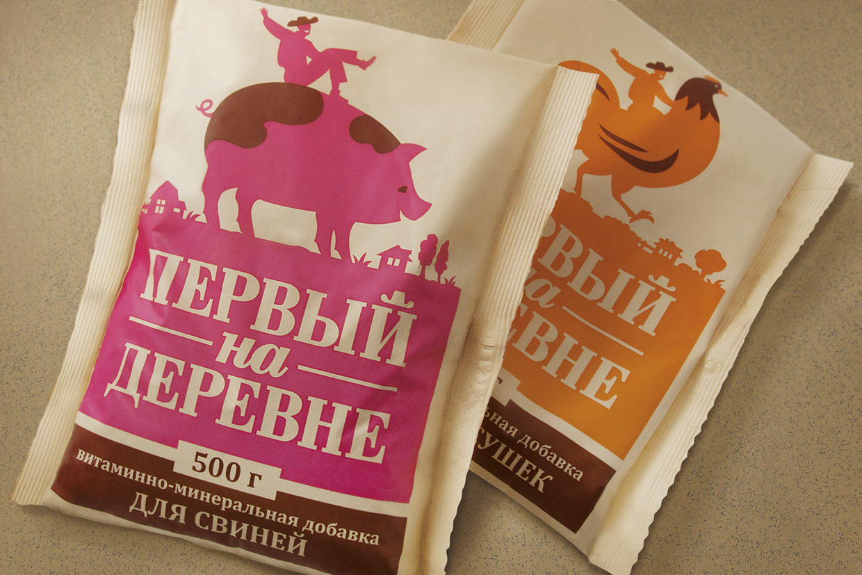 Агентство VOZDUH в 2013 году разработало дизайн упаковки для марки сельскохозяйственных кормовых добавок «Первый на деревне» компании «Агробалт Трейд». Концепция основана на использовании образа успешного американского фермера, так называемого сельского «ковбоя», способного «укротить» любую домашнюю живность, т.е. самого настоящего «первого парня на деревне».
